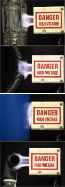 ●大気中にプラズマ放電を発生させるので、アース極を必要としませんので、中空ボトルもしくは凸凹のある成型品等の表面改質ができます。